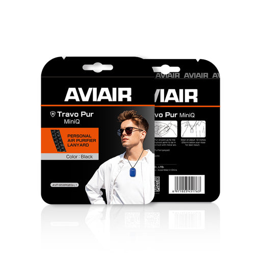 Product :MiniQ Personal Air Purifier LanyardModel : AVP-858RQEQ-L1Color : BlackMaterials : Polyester, Metal, PlasticLength :50cmWeight : 5g User Gu...
